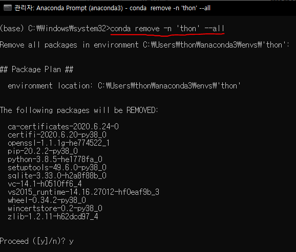 방법 1. Anaconda Prompt에서 명령어로 삭제
