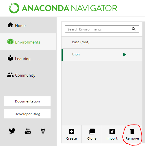 명령프롬프트로 제거하지 않고 위의 화면에서도 가상환경 제거가 가능하다.