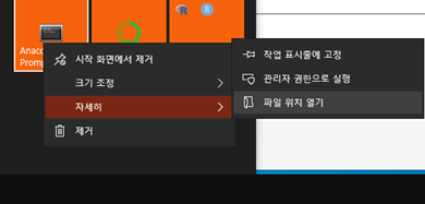 1. Anaconda Prompt 실행 파일 위치 열기