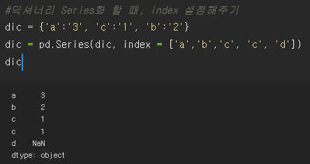 dic = pd.Series(dic, index = ['a','b','c', 'c', 'd'])