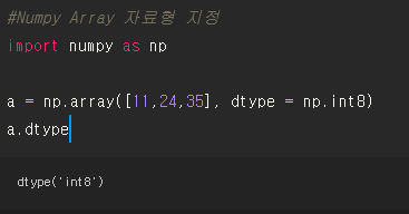 np.array([~], dtype = np.자료형)