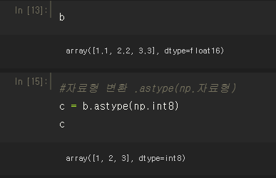 #자료형 변환 .astype(np.자료형)