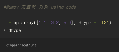 #Numpy 자료형 지정 using code
