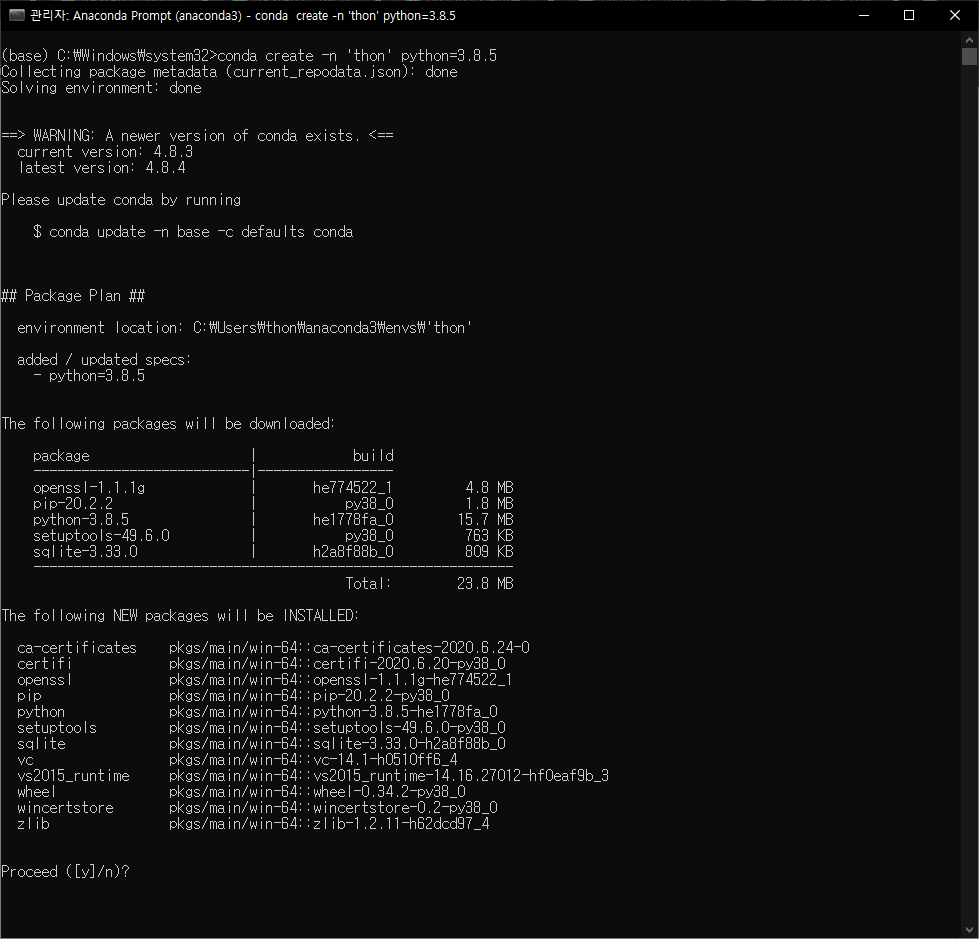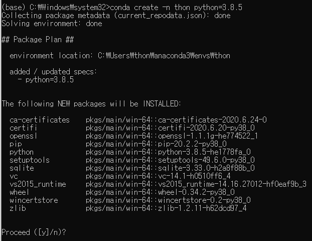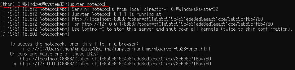 따라서 이후에도 접속할 때 activate thon 을 먼저 실행해 가상환경에 진입한 다음,