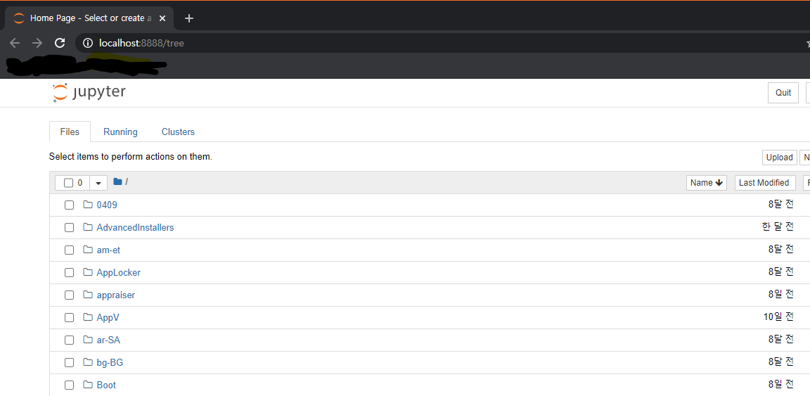 jupyter notebook 을 입력해서 주피터노트북을 실행한다.