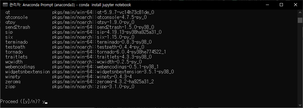 자신이 설정한 가상환경에서 주피터 노트북 설치를 진행하자.
