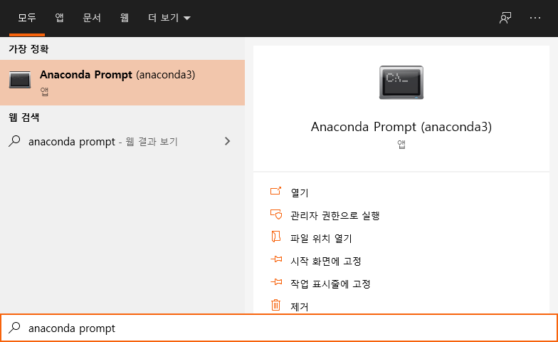 1. Anaconda Prompt 실행 (관리자 권한으로 실행)