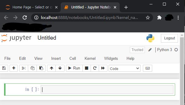 이제 이 주피터 노트북 에디터를 이용해서 코딩을 진행할 수 있다.