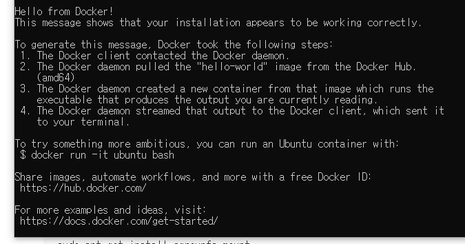 그랬더니 도커 설치가 정상적으로 진행됐다.